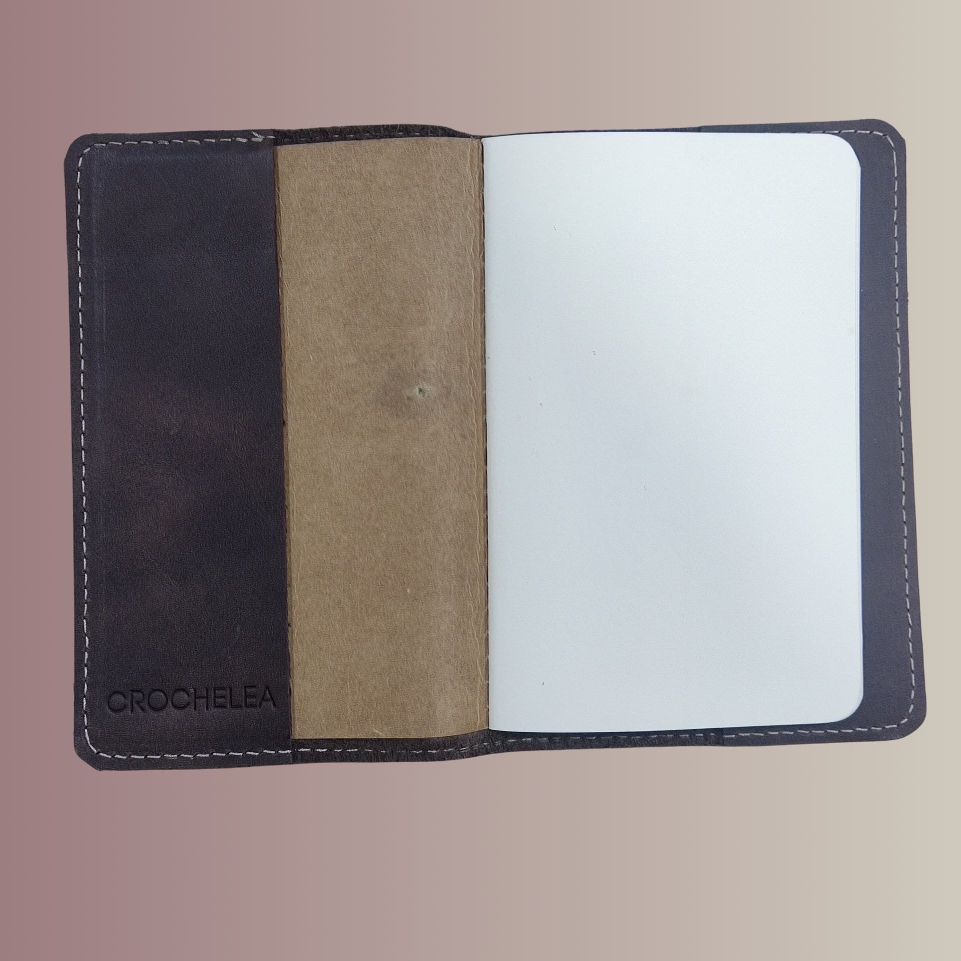 Authentic Crazy Leather exterior with a refined hand-feel. The cover is durable and ages gracefully, developing a patina over time.
