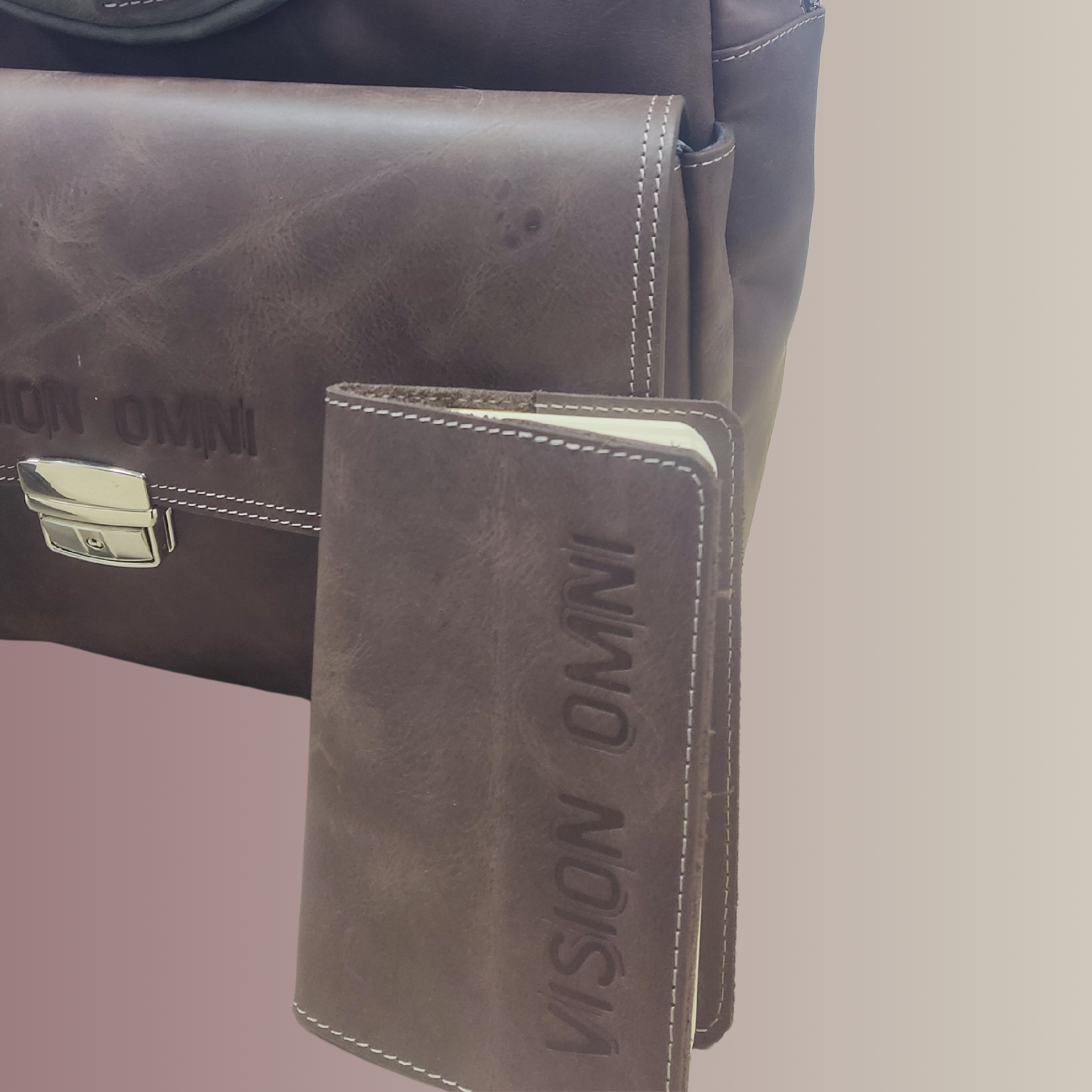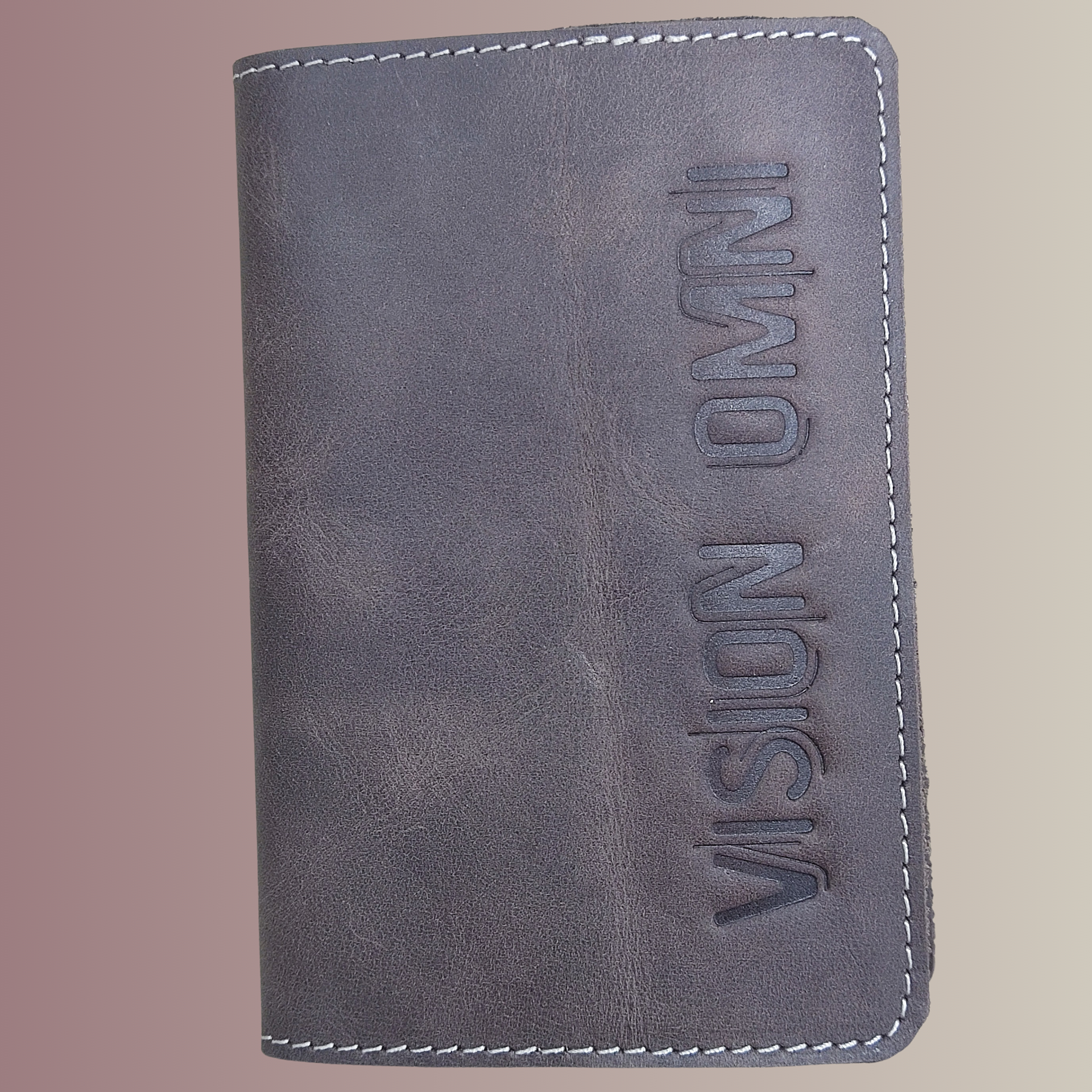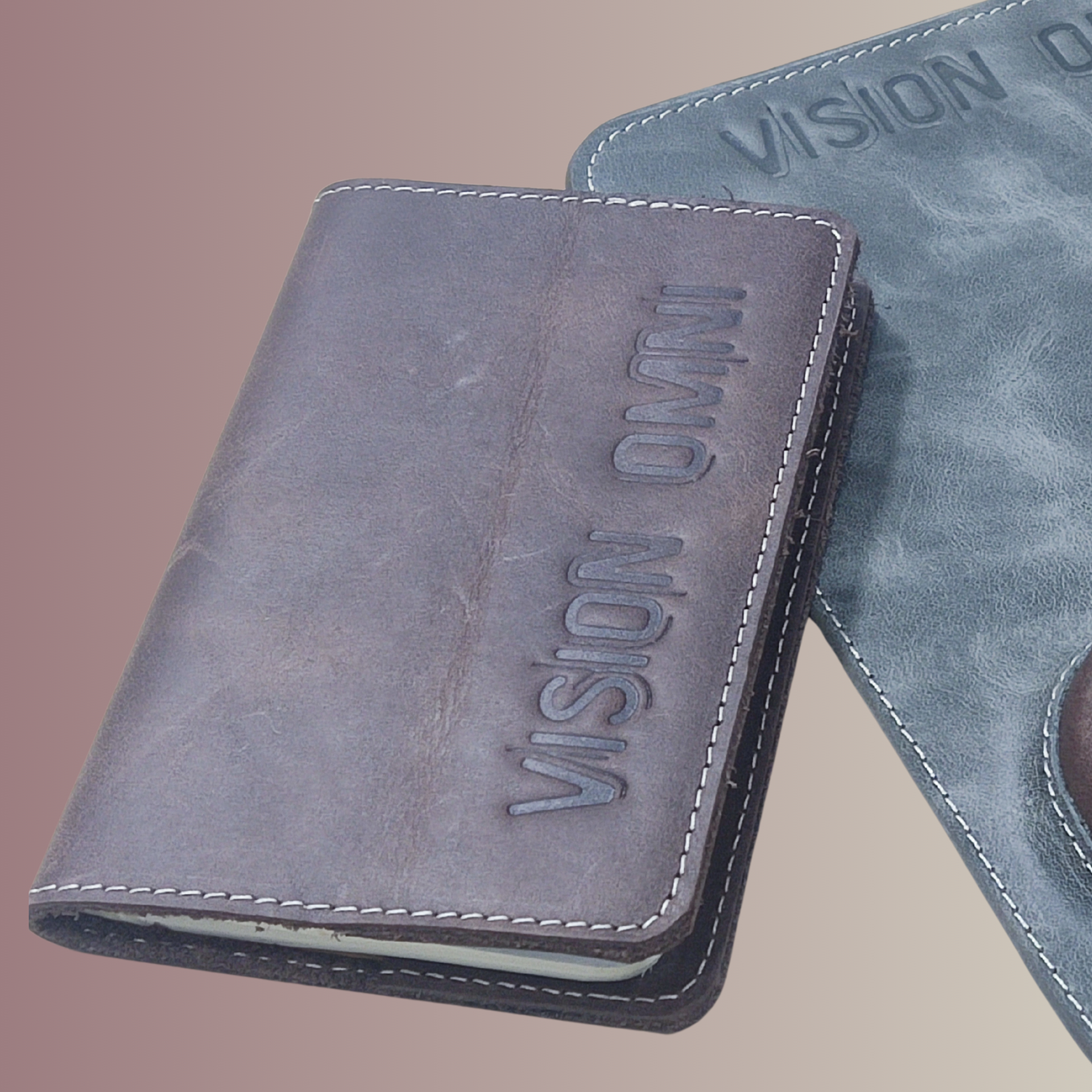 VISION OMNI logo debossed on the cover for a permanent, tactile branding.