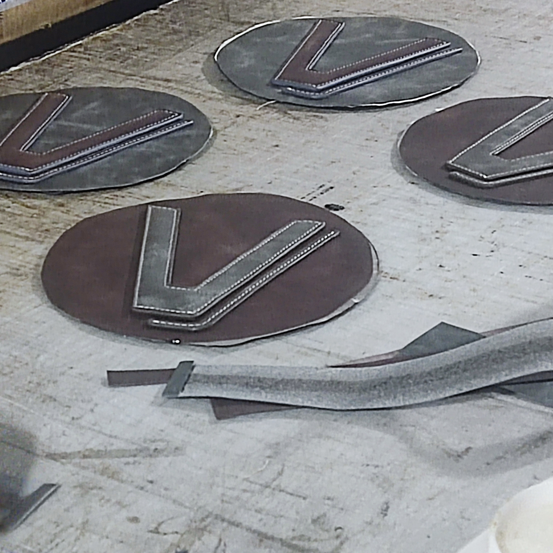 The circular “V” icon is pressed directly into the leather – it won’t peel, fade, or wear off. This brand identity is built into the material itself.