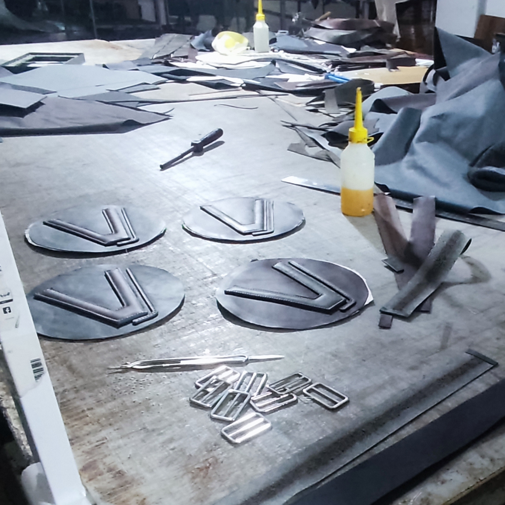 Skilled artisans lay out templates to align with the leather grain and avoid imperfections.